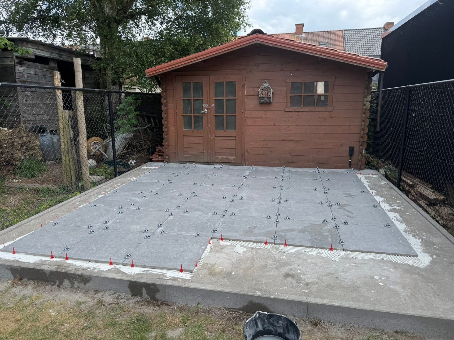 We hebben een betonplaat gegoten voor een tuinhuis